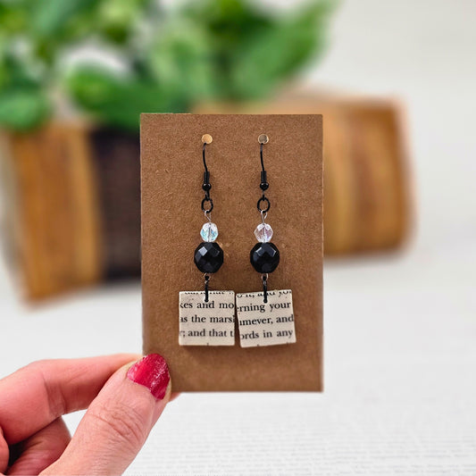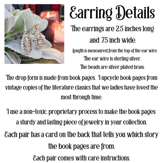 View our gorgeous collection of handmade literary earrings. Each piece is made by hand, by me, here in my studio in Kentucky. My earrings are made to be a durable, water resistant and lasting piece of jewelry in any book lovers collection.