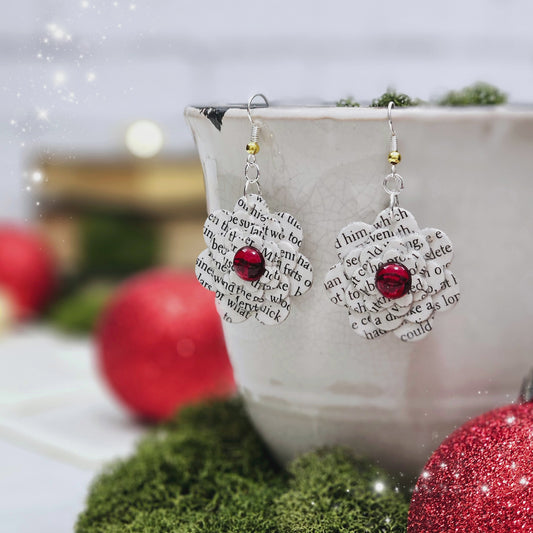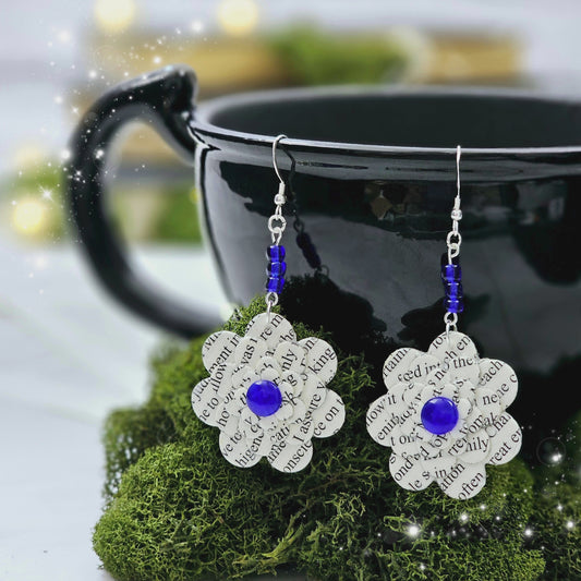 Flower Dangle Book Page Earrings for Teacher Appreciation, Book Lover or Book Club Gift Idea
