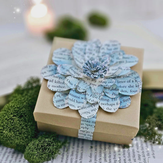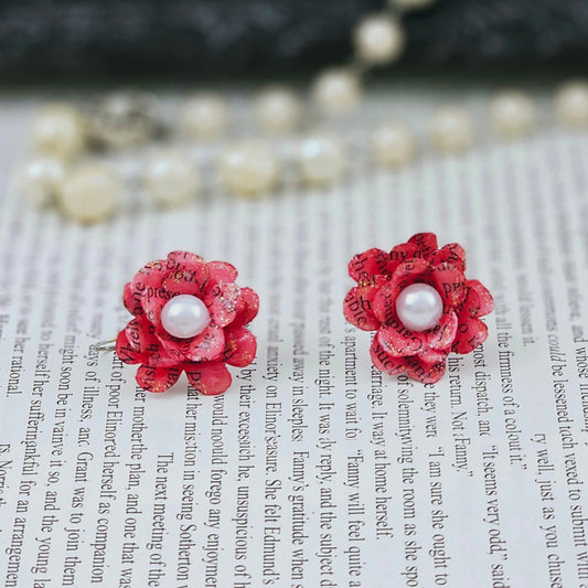 Flower Dangle Book Page Earrings for Book Lover Gift Idea