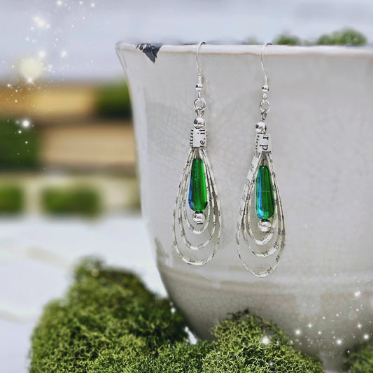 Green Glass Teardrop Book Page Earrings for Book Lover Gift