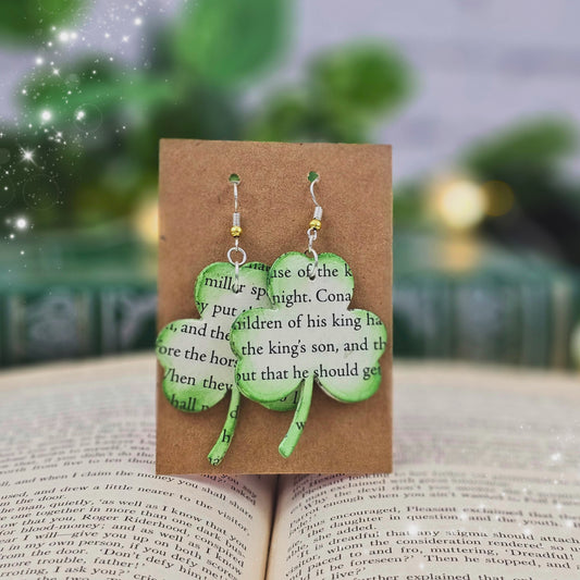 Shamrock Book Page Earrings - Literary Jewelry for Book Lovers