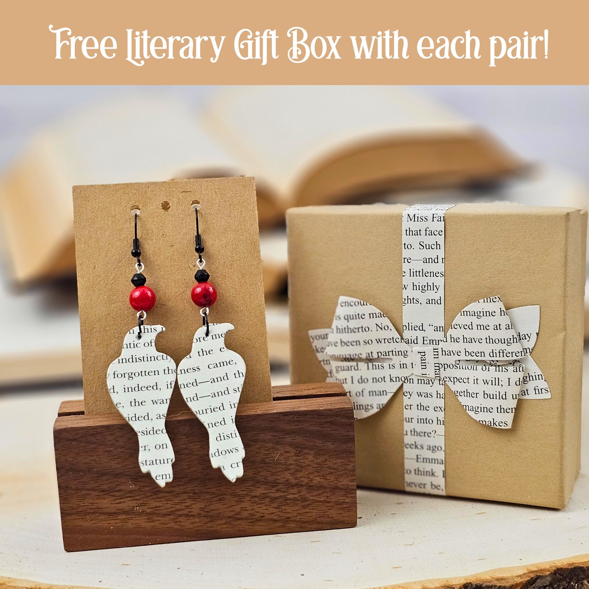 Why You’ll Love Them: These bookish earrings are more than just accessories—they’re a wearable tribute to classic literature and the mysterious world of Edgar Allan Poe. The raven shape is instantly recognizable to fans of gothic fiction, while the use of authentic book pages makes each pair a piece of literary history.