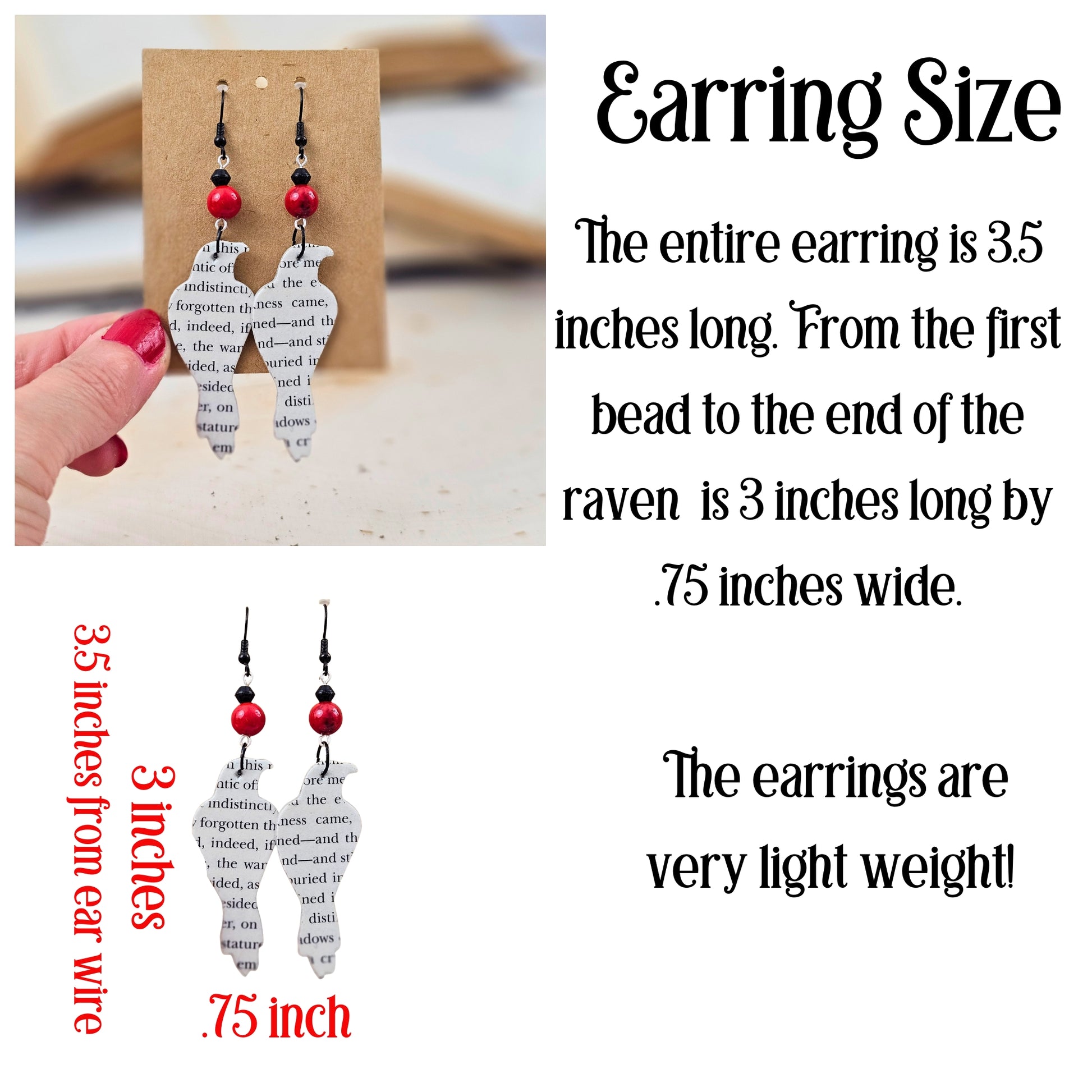🖤 Raven Book Page Earrings – Edgar Allan Poe Literary Jewelry for Book Lovers
