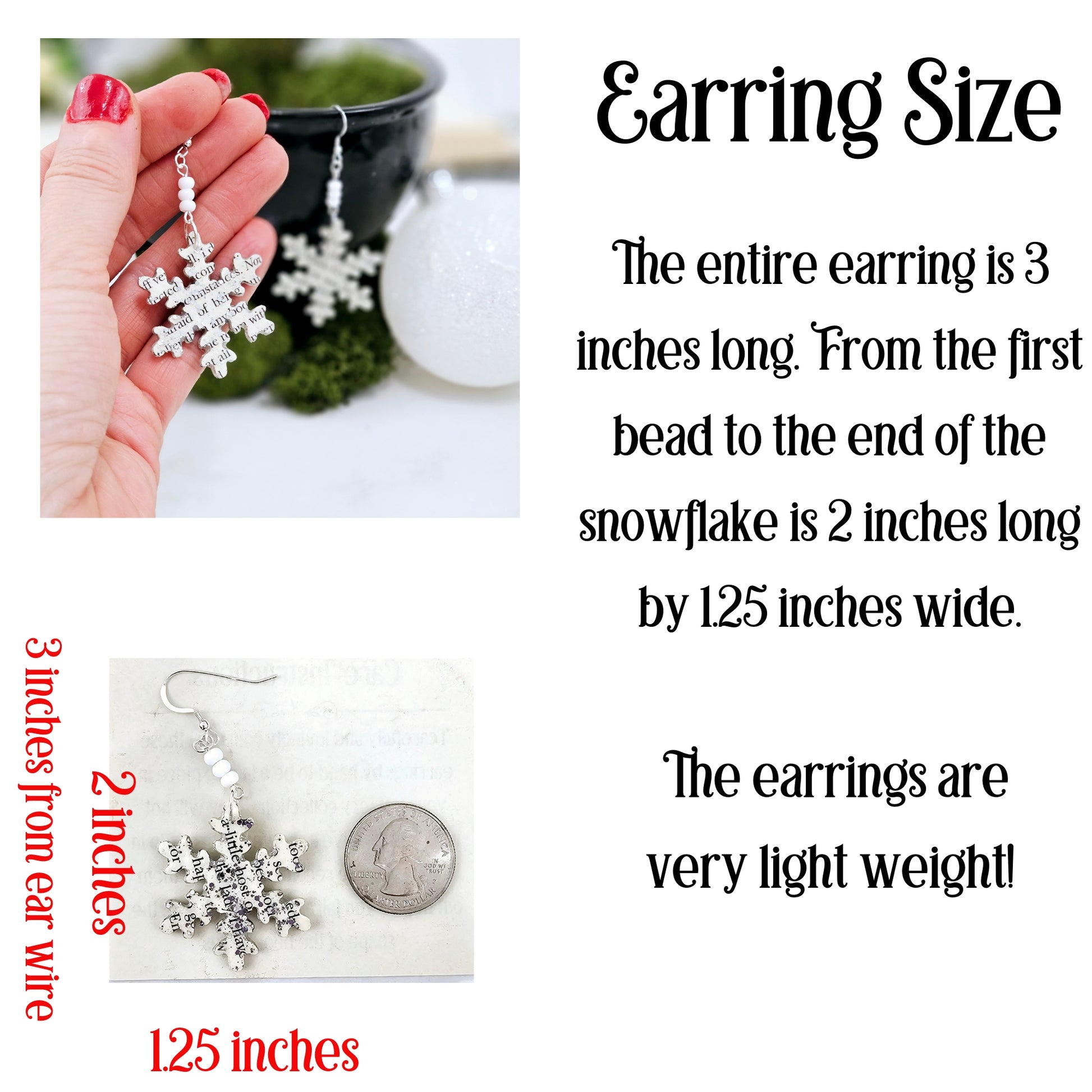 Snowflake Book Page Dangle Earrings for Book Lover Christmas Gift, Book Club Gift Exchange